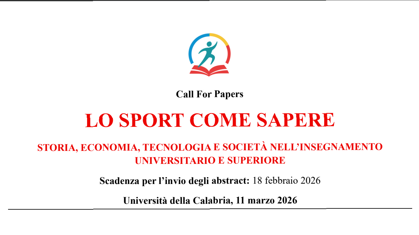 La call, organizzata col CdL in Scienze del Turismo dell’Unical, prevede l’invio di un abstract (max 300 parole) e di una breve biografia (max 150 parole) all’indirizzo calcioconvegno@gmail.com entro il 18 febbraio 2026.