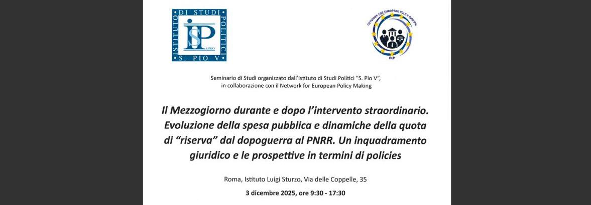 Seminario di Studi organizzato dall’Istituto di Studi Politici “S. Pio V”, in collaborazione con il Network for European Policy Making
