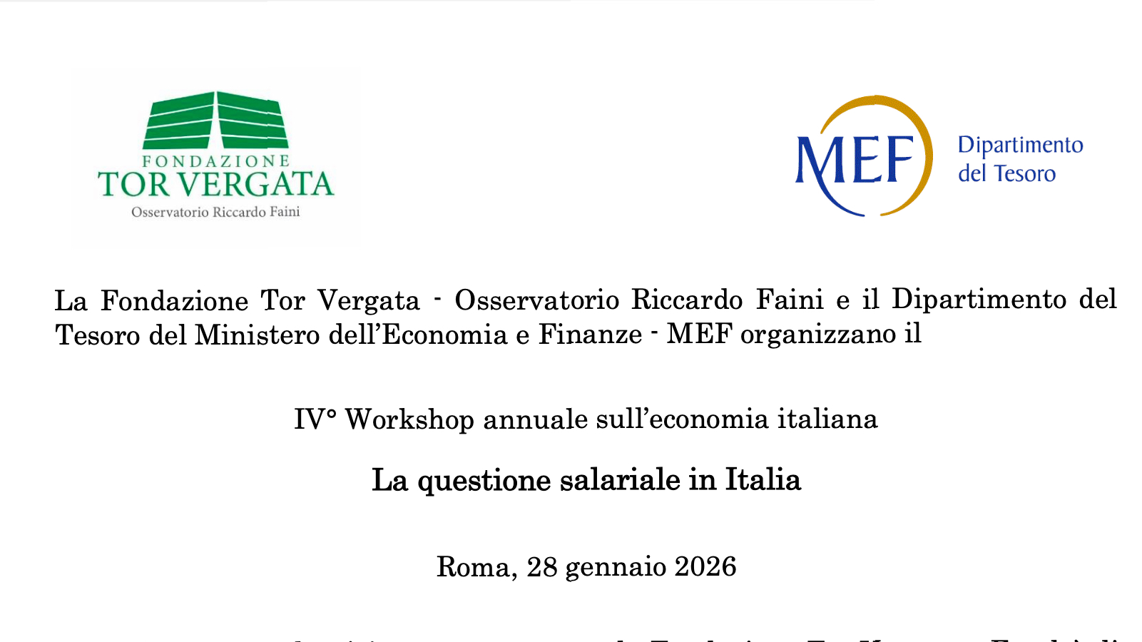 organizzato dalla Fondazione Tor Vergata – Osservatorio Riccardo Faini e dal Dipartimento del Tesoro del Ministero dell’Economia e Finanze – MEF.